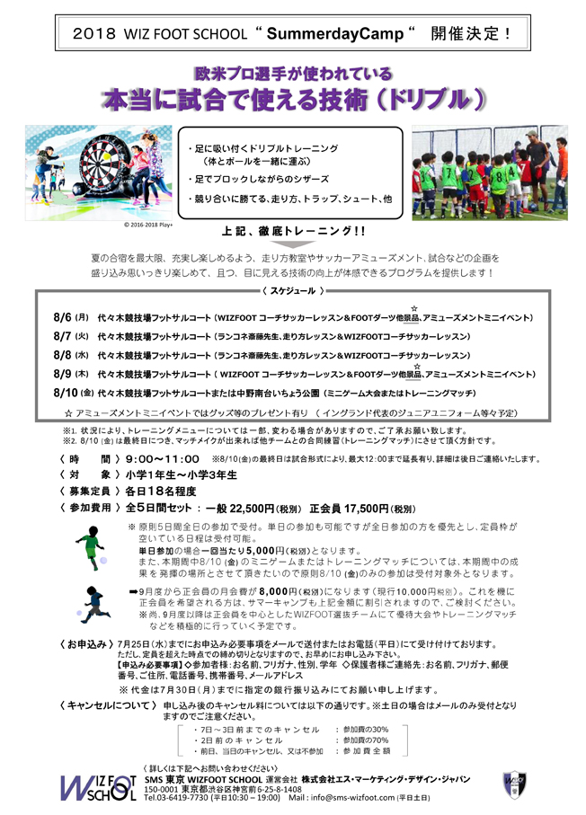 - SMS TOKYO WIZ FOOT SCHOOL 本開校!2017年5月23日